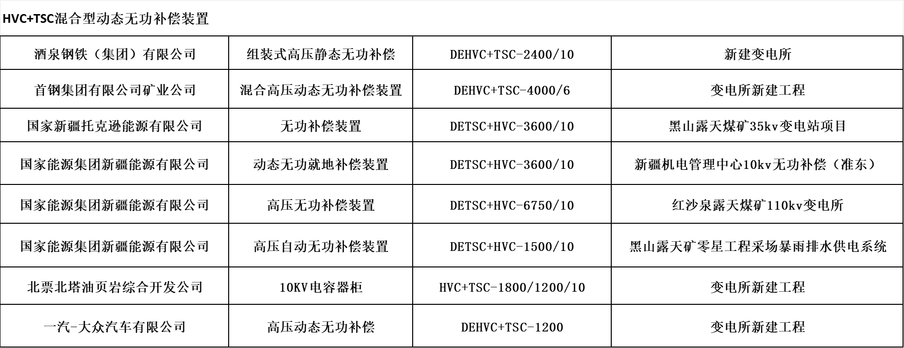 高壓HVC+TSC動態(tài)無功功率補(bǔ)償裝置廣泛應(yīng)用于高壓交直流輸變電系統(tǒng)和冶金、煤炭、港口門機(jī)、電氣化鐵路、重型機(jī)械制造等工業(yè)、交通沖擊性負(fù)荷配電網(wǎng)中。其主要作用就是對沖擊性負(fù)荷、時變負(fù)荷能夠?qū)崟r監(jiān)測、動態(tài)補(bǔ)償,實現(xiàn)功率因數(shù)補(bǔ)償至0.9以上,穩(wěn)定系統(tǒng)電壓,減少供電系統(tǒng)的網(wǎng)絡(luò)損耗,提高電能質(zhì)量等顯著特點(diǎn),可以給用戶帶來巨大的經(jīng)濟(jì)效益和社會效益。
